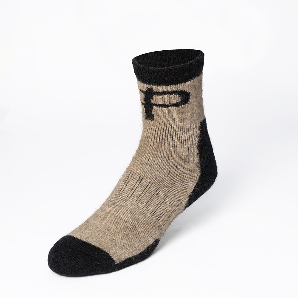 The thinnest Pearly, this is your go to every day sock year round. Soft, stretchy, comfy and warm, the Nomad is ready to wander with you. Approximately 3" high on the cuff and about half the thickness of an Original with a black band on the top of the cuff. Made with 45% New Zealand Merino wool, 45% Brushtail Possum Fur and 10% lycra (for strength and stretchiness). Like all Pearly's Wear they are made in New Zealand in small mills and hand crafted for perfection.